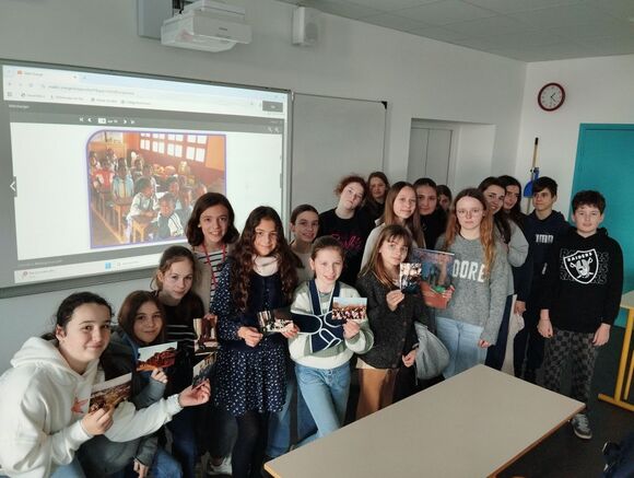 Mme Canova a présenté une école soutenue par une congrégation religieuse où chaque matin a lieu la levée de drapeau avec des élèves qui ont des maillots de couleur différente selon les classes. Des photos de classe au mobilier modeste ont été présentées avec des écoliers qui portent l’uniforme. Les enfants doivent se laver les mains à l’aide de bidons d’eau. Sur le temps de midi, ils mangent à même le sol avec un repas souvent à base de riz. Dans cette école, les instituteurs organisent aussi la plantation d’arbres pour diminuer l’érosion, avoir de l’ombre et pouvoir récolter des fruits plus tard. Les écoliers malgaches apprennent aussi le français et utilisent des livres écrits en français. Après l’école, les jeunes s’occupent de la famille, portent des vêtements de médiocre qualité car la population de Madagascar est très pauvre.